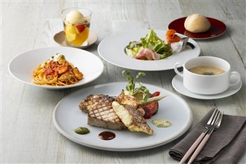 ホテルの味わいを気軽に愉しめる平日限定ランチ。メインディッシュは週替わりでご用意いたします。サラダ、スープ、デザート、コーヒー付き。ホテル公式LINEのお友達に登録するとご優待も。オフィスランチやビジネスタイムにぜひご利用ください。