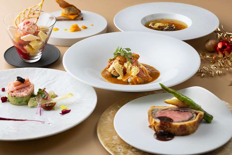 クリスマス ディナーコース "リシュ"和と洋が織りなす今年のクリスマスは、白味噌がアクセントになったアミューズからはじまり、冷前菜には、手毬寿しと甘海老とアボカドのタルタルをご用意し、一つのお皿で和と洋の共演をお愉しみいただきます。魚料理には、オマール海老にホワイトソースとチーズをかけて炙った一品を。メインには、日本三大和牛のひとつとして称される近江牛を黒トリュフ塩または白トリュフ醤油でご堪能ください。